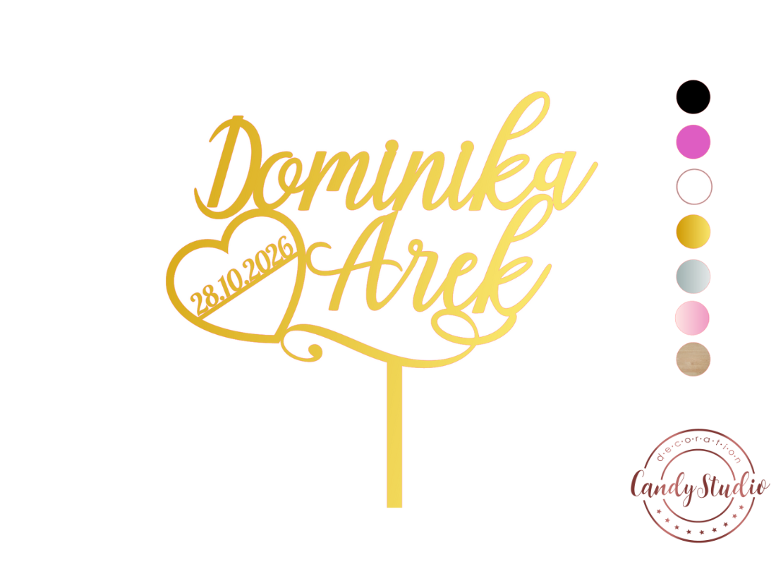 Er wird individuell mit zwei Namen sowie einem Datum im Herz angefertigt und macht jede Torte zu einem einzigartigen Highlight.